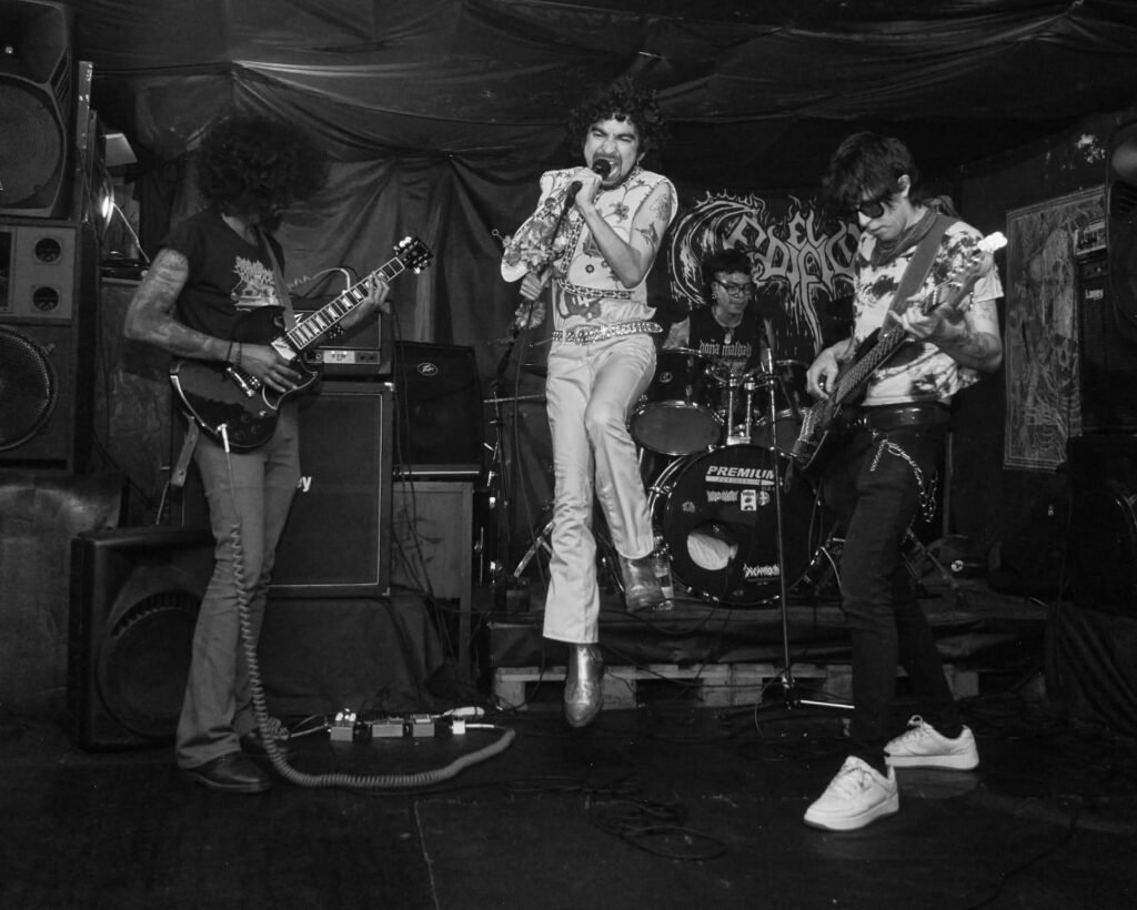 A su lado están Julián Gerena en el bajo, Carlos X en la guitarra y Hander Olivares en la batería. Juntos firman una descarga de heavy metal auténtico, crudo, directo, sin adornos innecesarios.