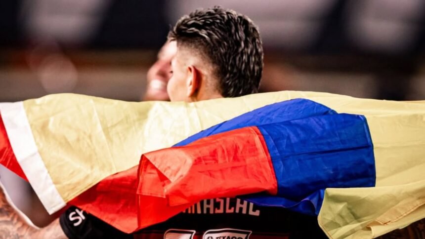 Junto a Carrascal aparecen sus compañeros de Flamengo Agustín Rossi, Leo Pereira, Danilo, Eric Pulgar, Giorgian De Arrascaeta y Pedrinho.