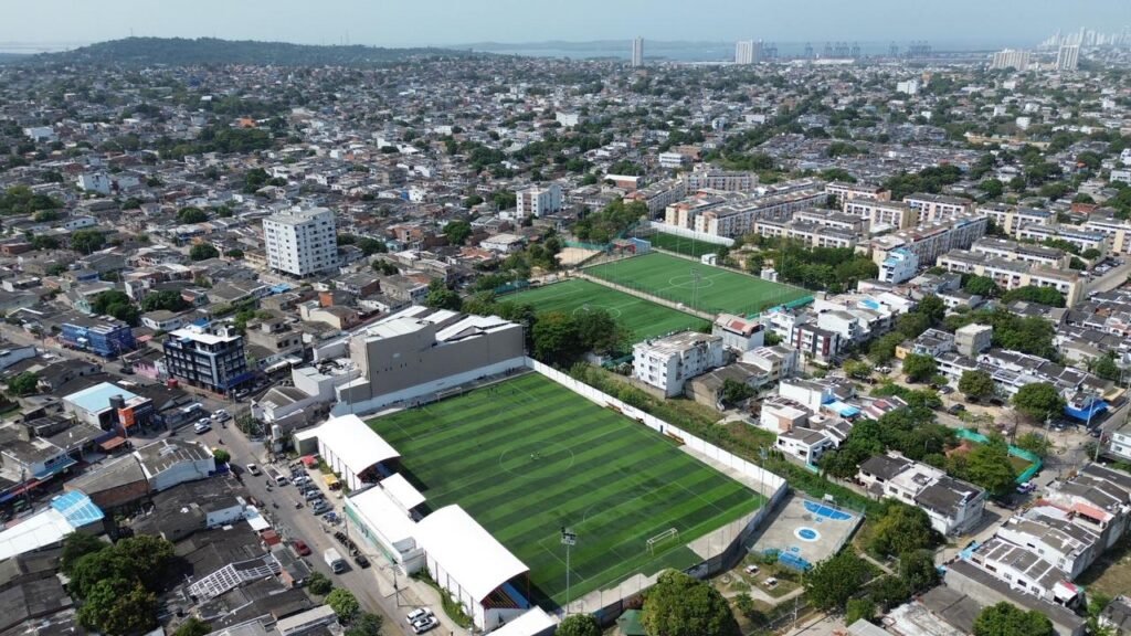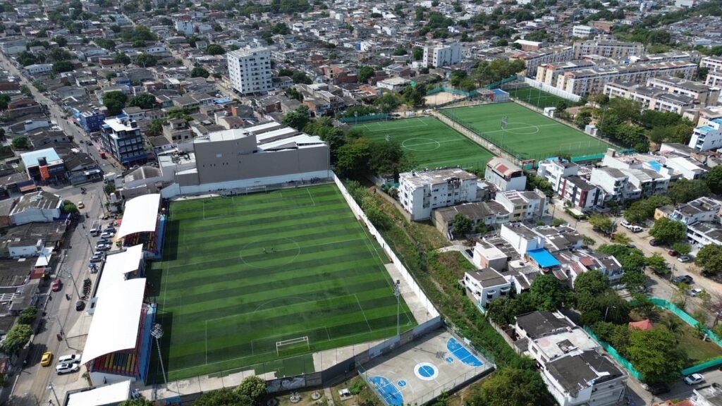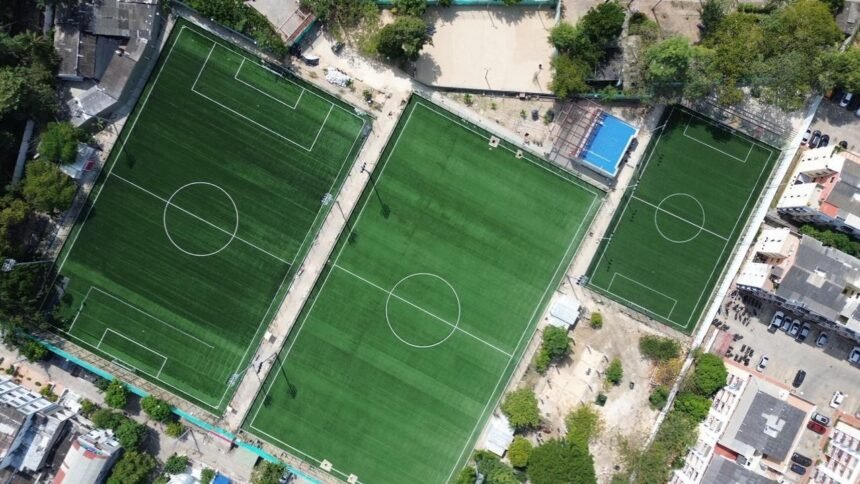 Las canchas que llevan los nombres de futbolistas cartageneros como Wilmar Barrios, Roger Martínez y el recordado Elson Becerra ya cuentan con pasto sintético nuevo, evidenciando una transformación integral del complejo deportivo.